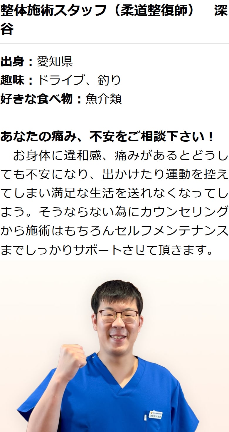 私は、「人さまに喜んでいただける存在になりたい」という思いから柔道整復師の道を志し、以来10年以上、多くの方の施術をおこなってまいりました。